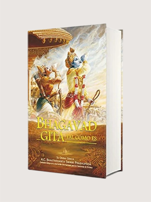 En este magnífico diálogo de setecientos versos, Sri Krishna, la Suprema Personalidad de Dios, explica a Su íntimo amigo y devoto Arjuna la hermosa ciencia de la autorrealización. Pero el Gita no se habló únicamente para Arjuna. Como compendio del profundo conocimiento védico relativo a la naturaleza esencial del hombre, de su entorno, y finalmente de su relación con Dios, el Gita dirige su mensaje a todos los hombres y mujeres de todos los tiempos.